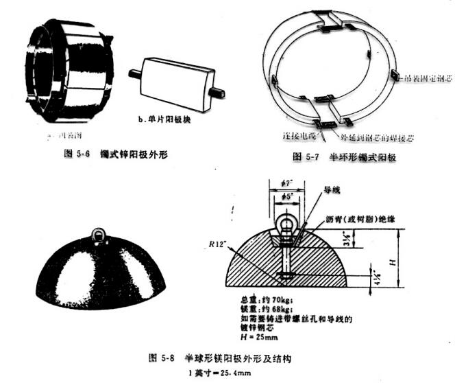 在陽極形狀的選擇上,根據(jù)被保護對象,環(huán)境的具體情況選擇陽極形狀,土壤中多用棒形陽極(截面有梯形、D形、矩形等),如果是其它形狀的陽極,則多用于特殊場合中。